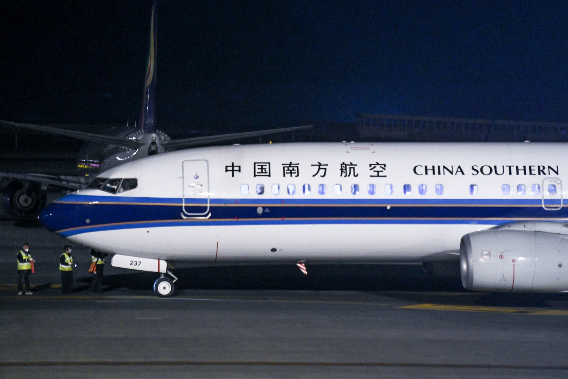 图为4月25日,一架中国南方航空CZ6015航班从乌鲁木齐地窝堡国际机场起飞,前往土库曼斯坦首都阿什哈巴德。