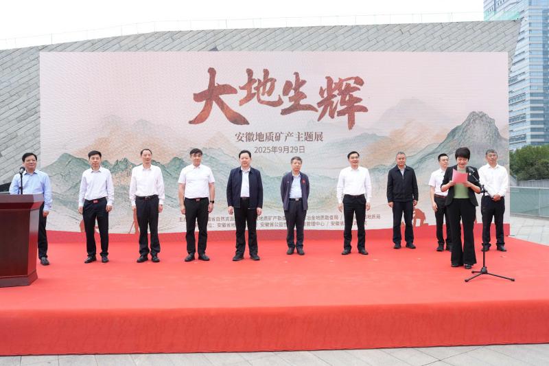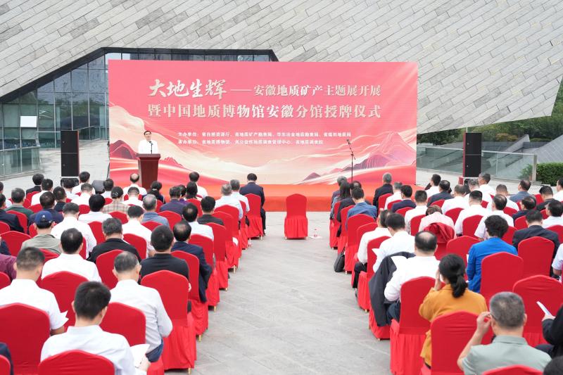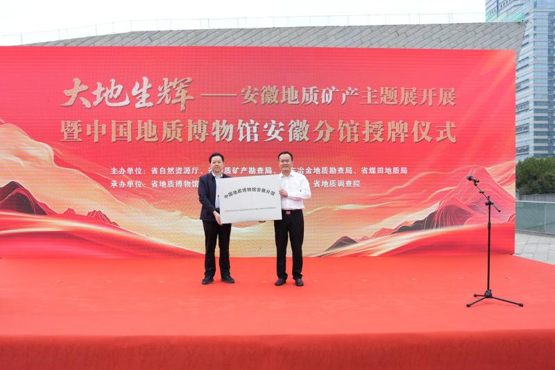 9月29日上午,“大地生辉——安徽地质矿产主题展”开展暨中国地质博物馆安徽分馆授牌仪式在合肥举行。自然资源部地勘司一级巡视员唐正国、中国地质博物馆馆长姚义川、中国地质调查局资源评价部主任邱海峻、国家自然资源督察南京局副局长贾宏俊、中国地质调查局南京地调中心主任毛晓长、安徽省自然资源厅厅长汪谦慎、安徽省地矿局局长朱学文、华东冶金局局长袁兆杰、安徽省煤田地质局局长李军等参加并共同启动展览。