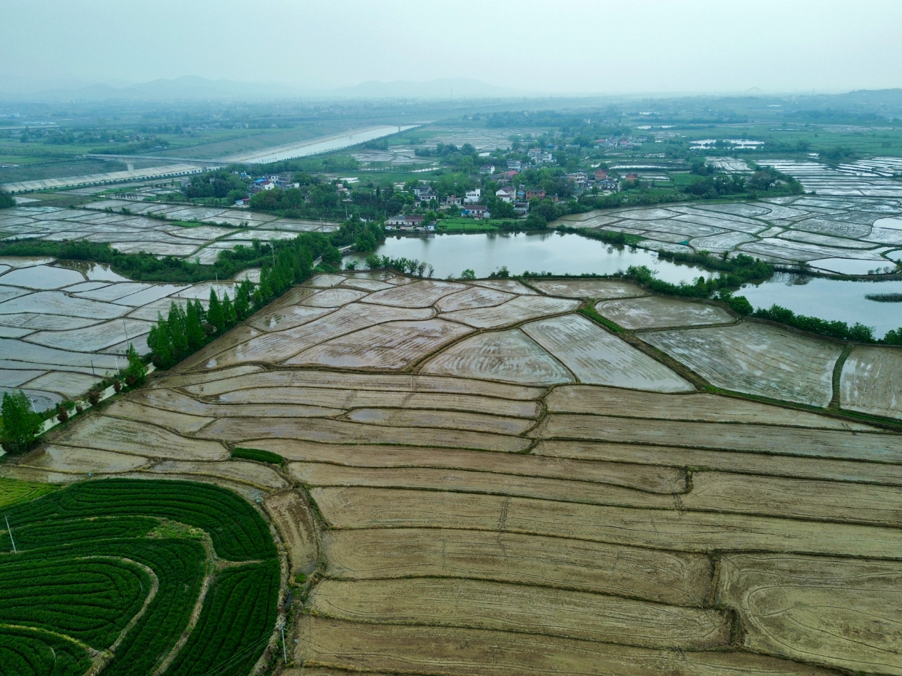 4月15日,俯瞰合肥市庐江县柯坦镇柿树村一带,只见远山如黛,薄雾似纱,澄澈水面映着粼粼金光,勾勒出一幅清新秀美的春日田园画卷。白墙红瓦的民居错落有致,在薄雾笼罩下更显古朴静谧;田畴阡陌纵横交错,小麦抽穗、油菜绿熟,处处洋溢着蓬勃生机,尽显乡村春日的独特韵味。