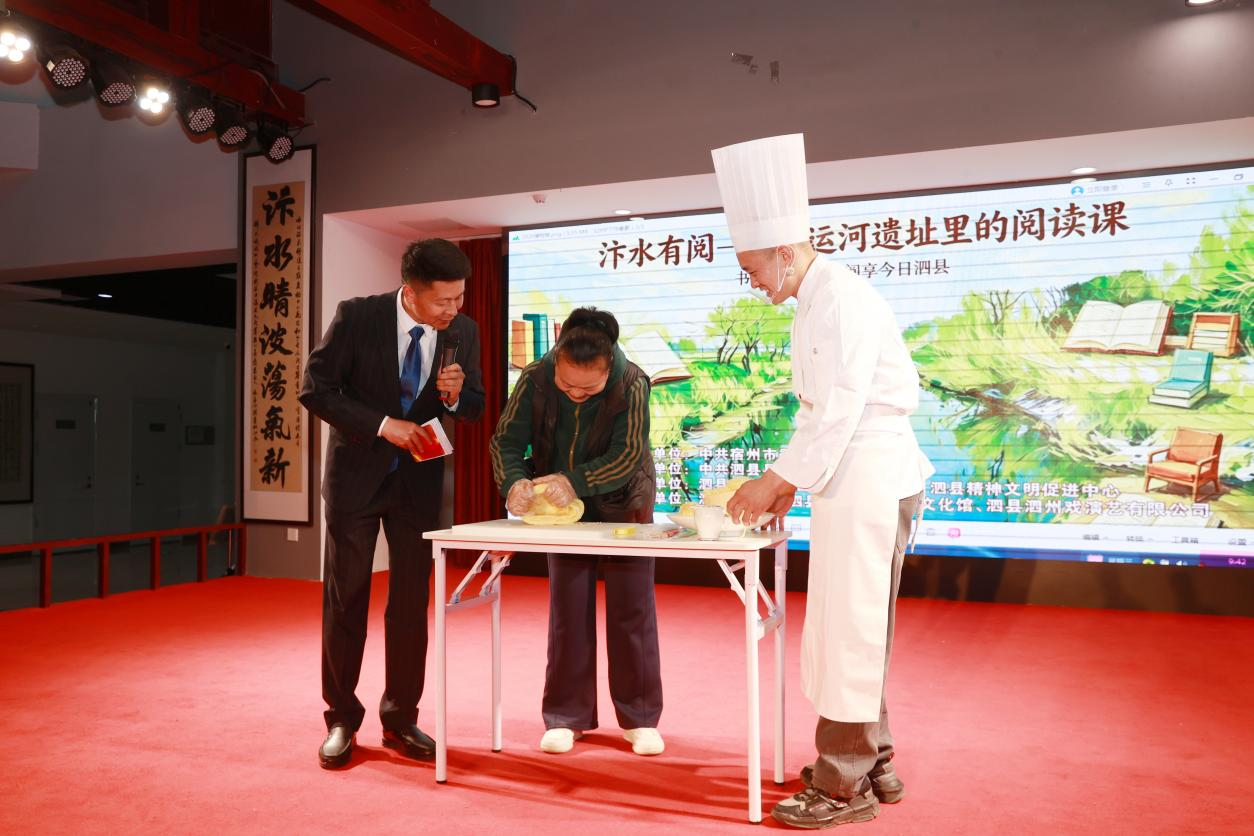 活动上全国乡村阅读榜样曹伟还宣读《全民阅读活动倡议书》,并发出现场图书捐赠倡议。《趣宿州》新书捐赠仪式同步举行,县图书馆现场接收捐赠图书。本次活动打破了传统阅读的单一模式,以“阅读”为核心,深度融合泗州戏、金丝绞瓜非遗技艺、运河历史文化,让阅读不再局限于书本,而成为一种可体验、可互动、可传承的文化活动。它不仅丰富了市民的精神文化生活,也为“书香泗县”建设注入了新的活力与生机。(刘娜英)